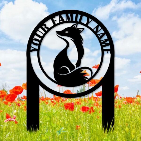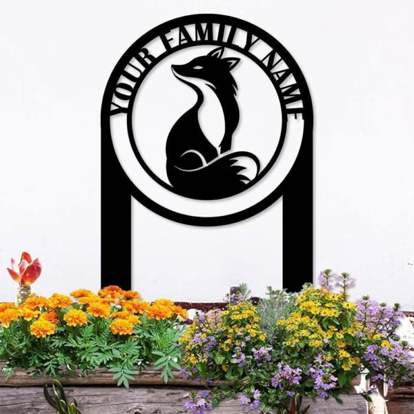 Custom Fox and Address Garden Metal Stake, Personalized Family Name Yard Sign, Outdoor Door Garden Decor, Garden Art, Gift for Fox Lover