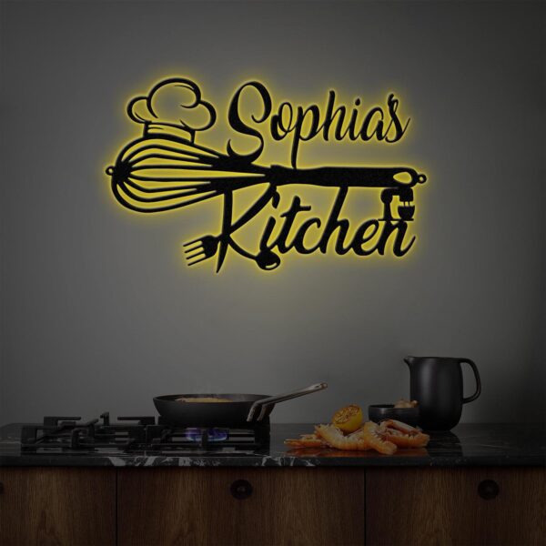 Custom Name Metal Kitchen Sign with Led Light, Kitchen Decor, Name Kitchen Sign, Kitchen Wall Art, Pantry Sign, Gift for Grandma Mom