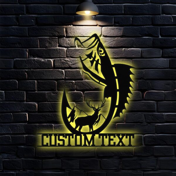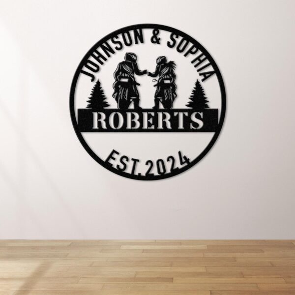 Family Fishing Hunting Lover Metal Sign, Personalized Family Name Led Metal Sign, Outdoor Door Decor, Fishing Wall Art, Housewarming Gifts