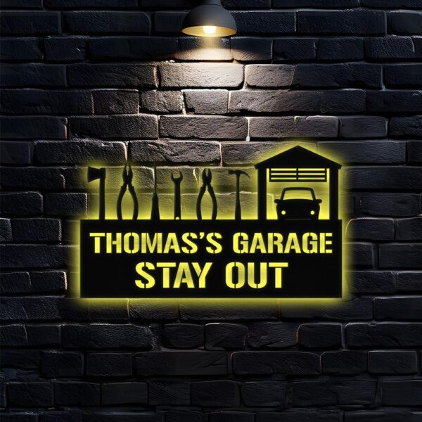 Master of The Garage Monogram Metal Sign, Personalized Family Name Led Metal Sign, Outdoor Door Decor, Address Wall Art, for Housewarming