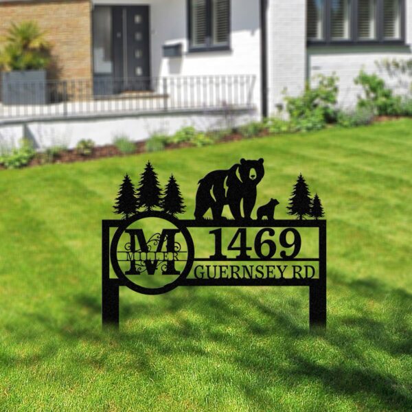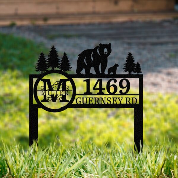 Personalized Bear Address Yard Stake, Bear Address Sign, Custom Family Name Sign, House Number Plaque, Yard Address sign, Outdoor Decor