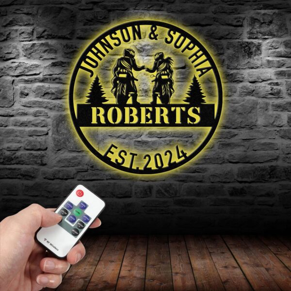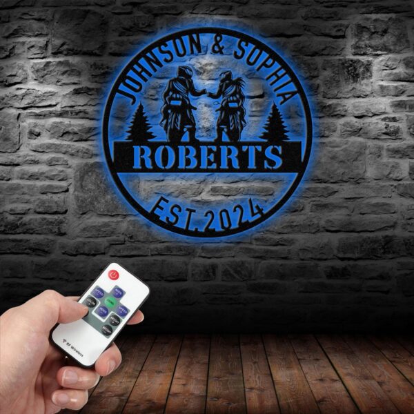 Personalized Biker Couple Metal Sign with Led Light, Custom Motorcycle Rider Wall Art For Decor, Anniversary Gift, Wedding Gift Motorcylce