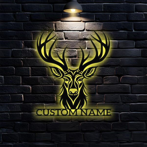 Deer Head Sign Metal Sign, Personalized Family Name Led Metal Sign, Outdoor Door Decor, Hunting Wall Art, Perfect Gift for Housewarming